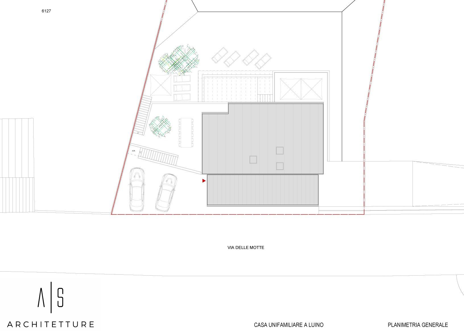 Il livello più alto, a ridosso del piccolo piazzale esistente (lato est), é dove trova spazio l’ingresso e l’autorimessa, che nel nuovo progetto vanno ad occupare tutta la “fascia nord” dell’edificio e l’ingresso all’abitazione.